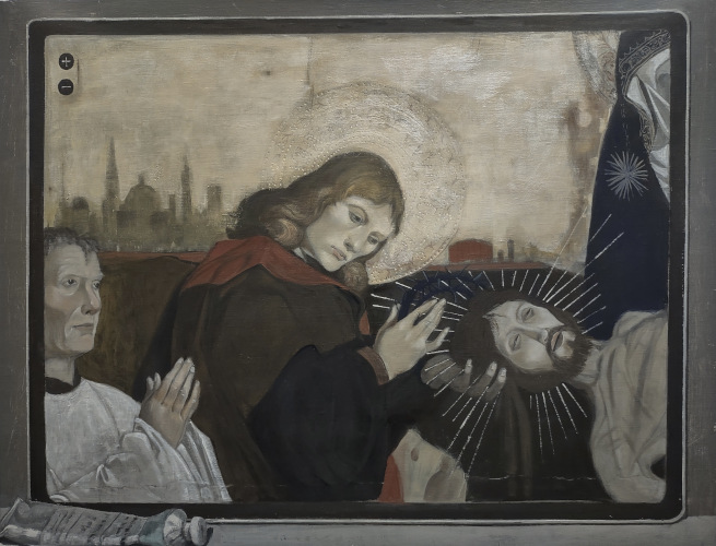 ipad (with pieta image) and paint tube oil/canvas 27x36